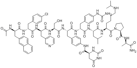 | Sequence | Ac-D-2Nal-D-Phe(4-Cl)-D-3Pal-Ser-Phe(4-S-dihydroorotamido)-D-Phe(4-ureido)-Leu-Lys(iPr)-Pro-D-Ala-NH2 |