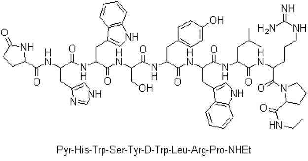 | Sequence | Pyr-His-Trp-Ser-Tyr-D-Trp-Leu-Arg-Pro-NHEt |